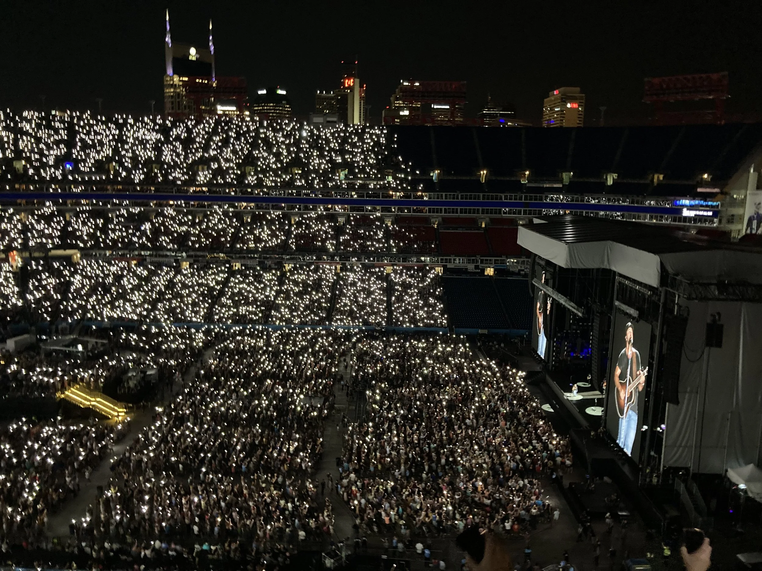 During one of the sets Luke Bryan was singing and asking people to pull out their phones and “light it up.” One by one we saw phones lighting up the stadium so much that when they turned the stadium lights it was like nothing had changed. Yes, there were over 60,000 people in attendance to do this.