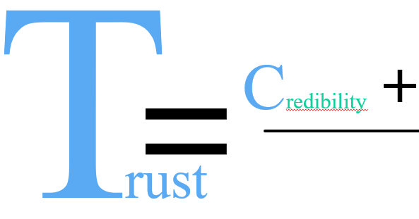 The last couple of weeks I have been helping you with understanding that there are different levels of trust needed for different levels of relationships and the three questions that we need to answer to build trust and influence. Today I would like help you with a concept that I created for people to visualize an easy way to understand what goes into trust. I call it the “Trust Equation” and it has helped many people start building trust easily by understanding the components of trust.