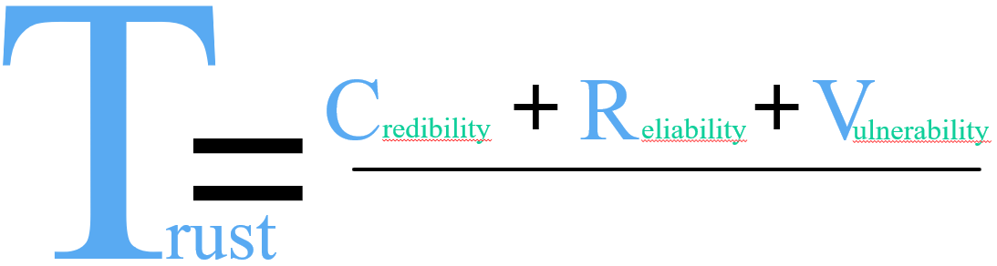 There are many aspects to trust and how to build high levels of trust. Different environments also require different levels of trust. I have been asked many times for a simple roadmap in building trust. Something simple for people to remember and be able to apply. I have also spoken to Multi-Billion dollar organizations to help teams build trust by using this equation. That is why I have created the Trust equation.